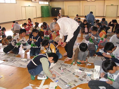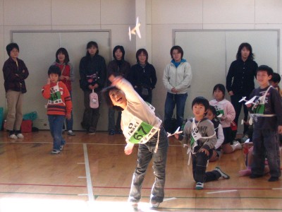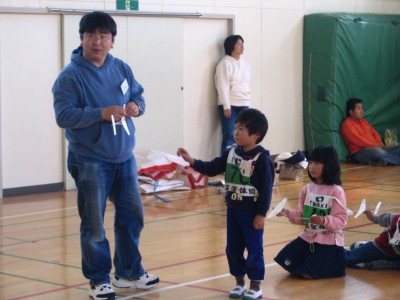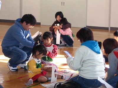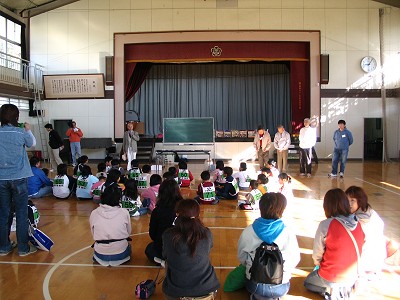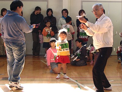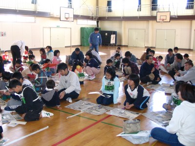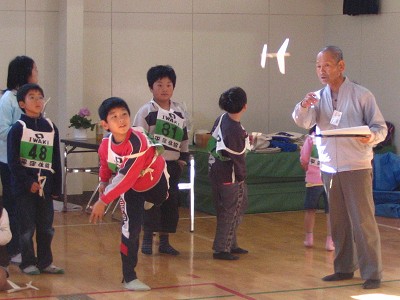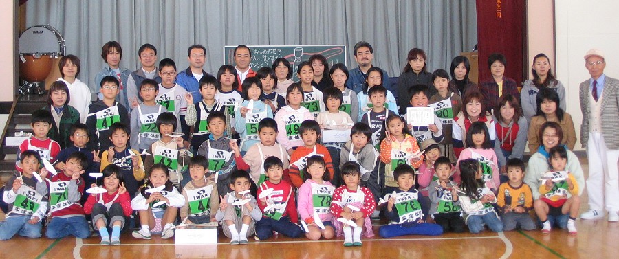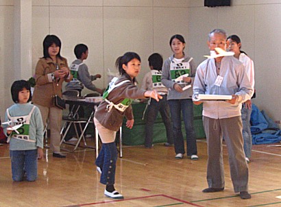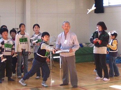 2004年11月13日実施 『ひらくぼペーパーグライダー大会』 われわれ「いわき紙飛行機を飛ばす会」のホームタウンであるいわき市内の平第四小学校での紙飛行機教室でした。主催は「青少年育成会議平窪支部」、共催は「平窪公民館」。約50人が集まりました。